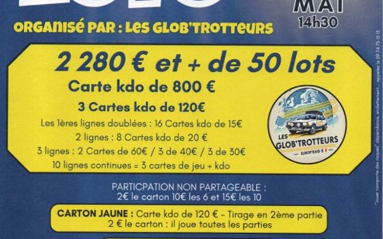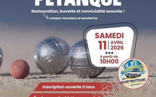Tournoi de pétanque – 11 avril 2026 L’association Les Glob’Trotteurs organise un tournoi de pétanque le samedi 11 avril 2026 afin de récolter des fonds pour un raid humanitaire.