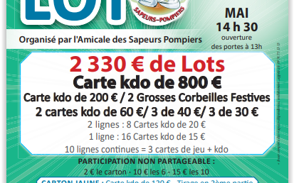 Inscriptions : sur place le jour même ou par téléphone au 06 23 06 40 13 On vous attend nombreux !