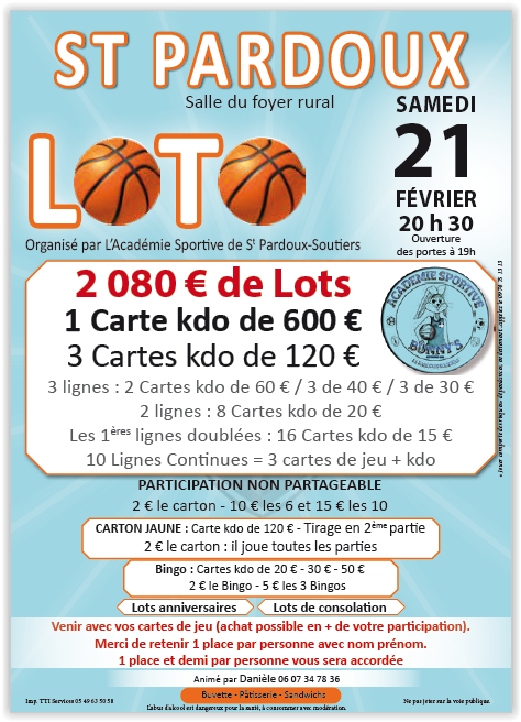 Organisé par L'ACADEMIE SPORTIVE ST PARDOUX SOUTIERS
