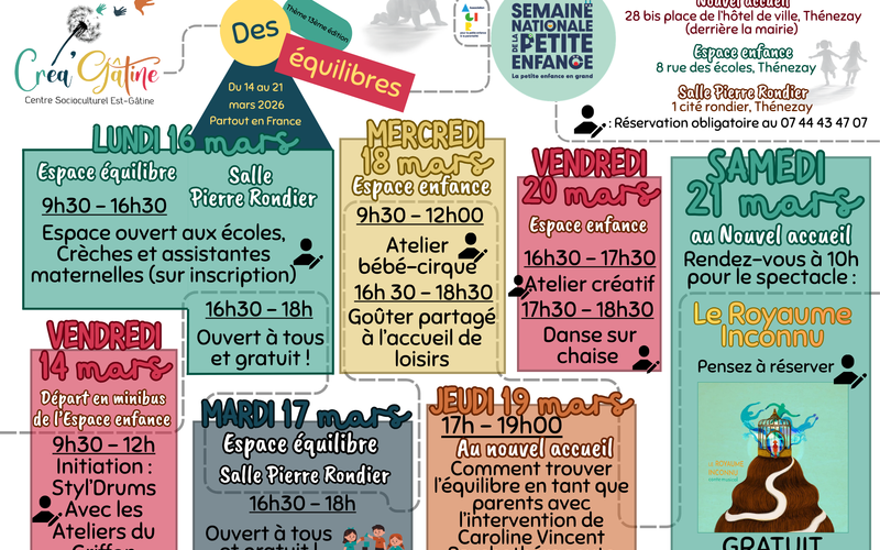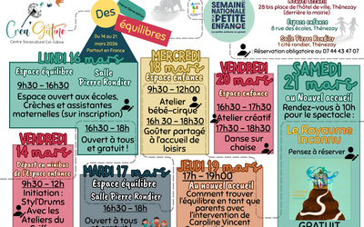 À l’occasion de la Semaine Nationale de la Petite Enfance, le CSC Créa'Gâtine propose une semaine dédiée aux tout-petits (0–6 ans) et à leurs familles.