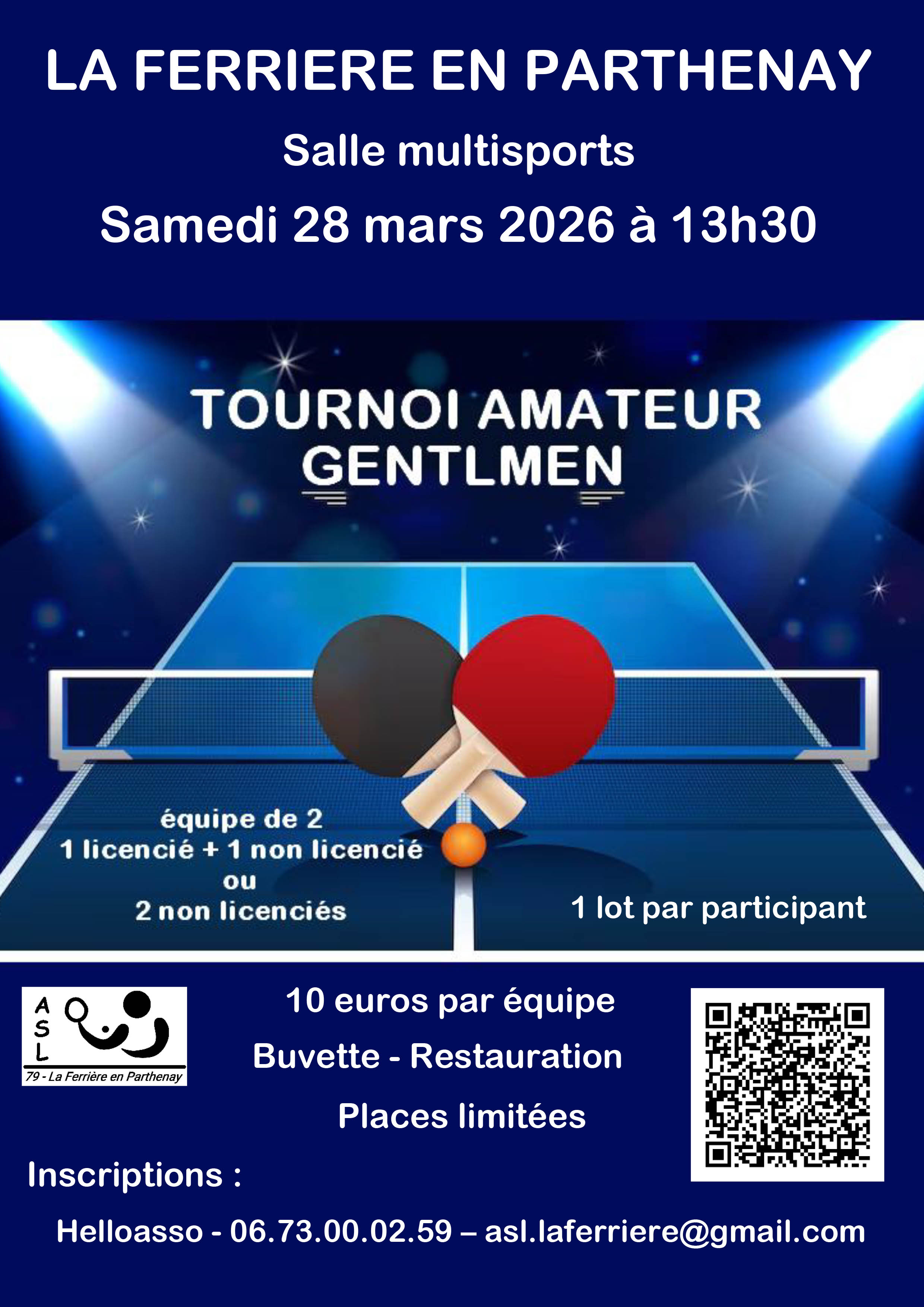 Places limitées - inscriptions : Hello Asso - 06 73 00 02 59 - asl.laferriere@gmail.com